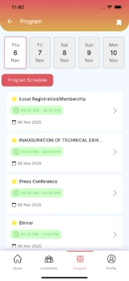 • Important Links—One-tap access to registration portals, program brochures, abstract submissions, exhibition forms, accommodation options, and more.