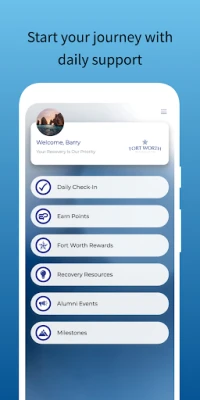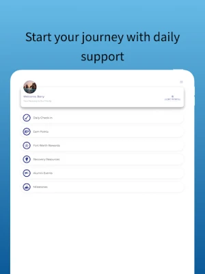 Introducing the Fort Worth Recovery App, your dedicated partner for a lasting recovery journey. Track your daily actions with check-ins, earn points through standard surveys, and redeem them in the fulfillment store for digital gift cards. Stay connected with essential resources like a meeting finder, sobriety tracker, recovery literature, and media. Keep up with alumni events and programming through the app’s integrated calendar, built exclusively for Fort Worth alumni. Download the Fort Worth Recovery App today and stay empowered on your path to wellness!