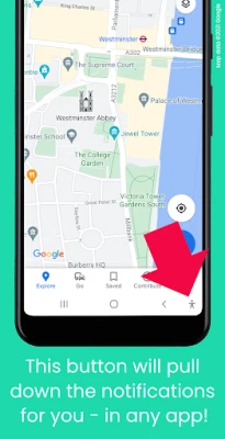 Tired of having to reach all the way up to the top of the screen each time a new message arrives? This app adds a new button to your phone's navigation bar - which will pull down the notifications for you. Just tap the button, and the notifications will be opened. Easy access from any app!